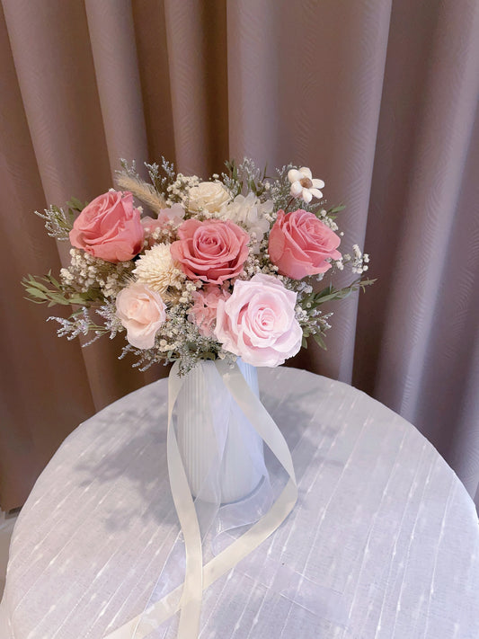 莫蘭迪粉永生花盅 大