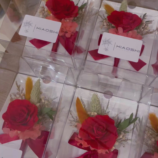 花材:永生玫瑰、永生繡球、永生水晶花 及 其他永生花材