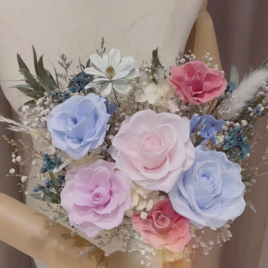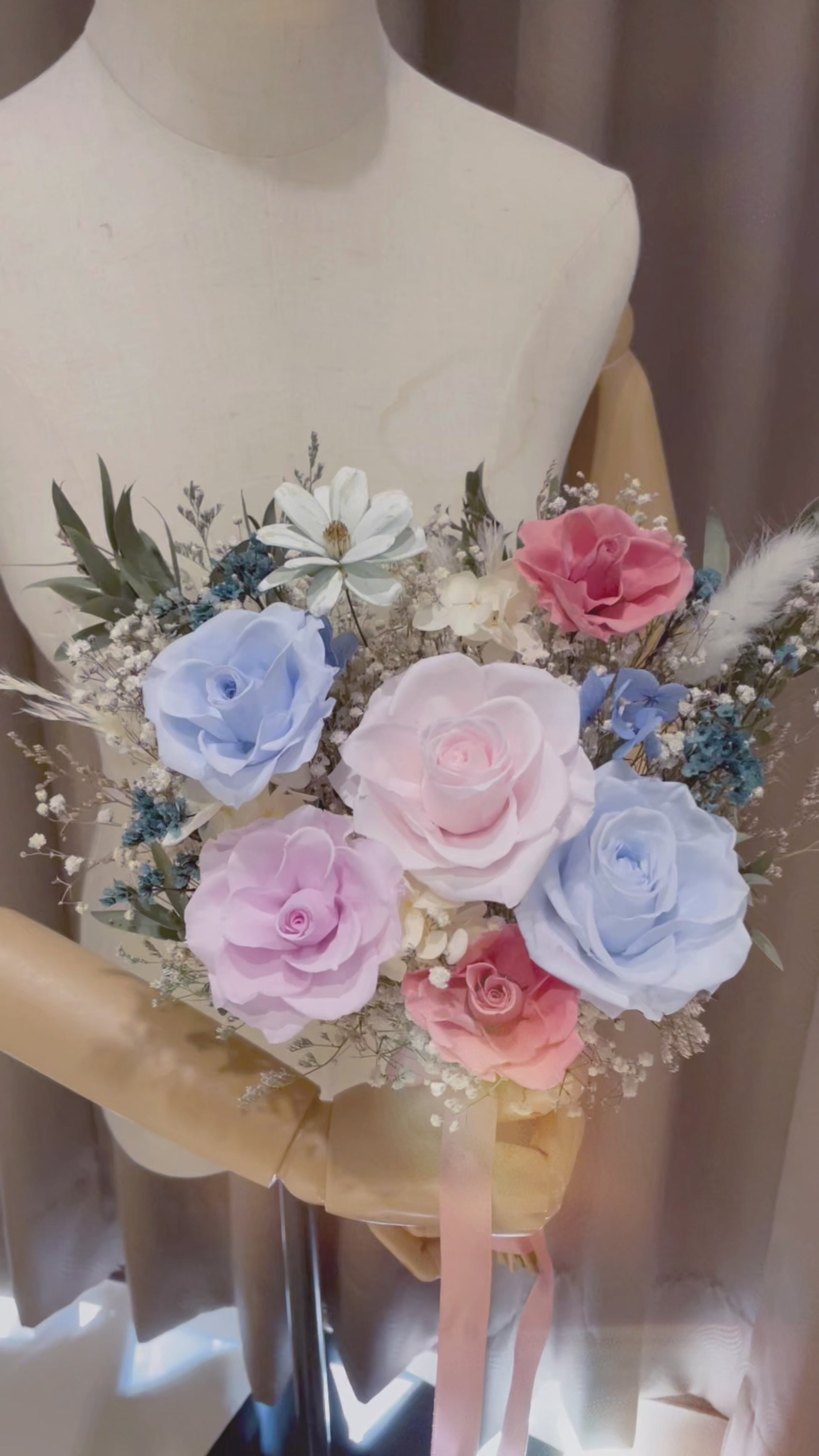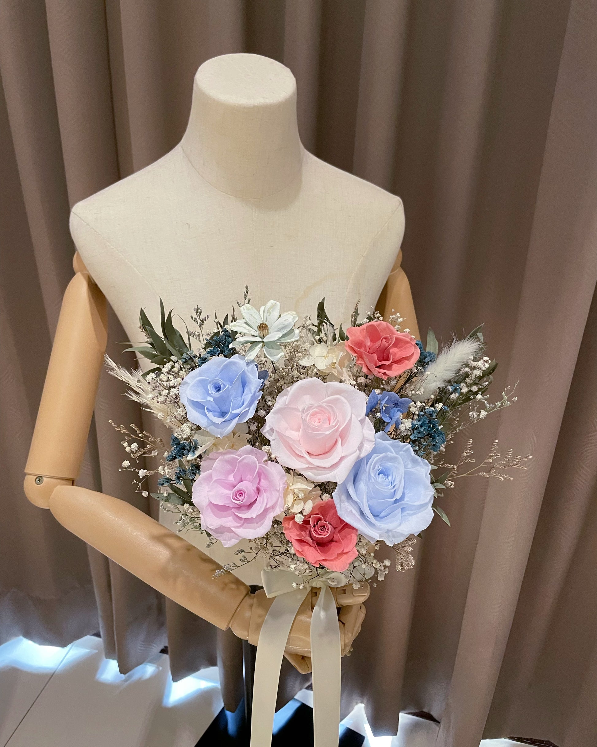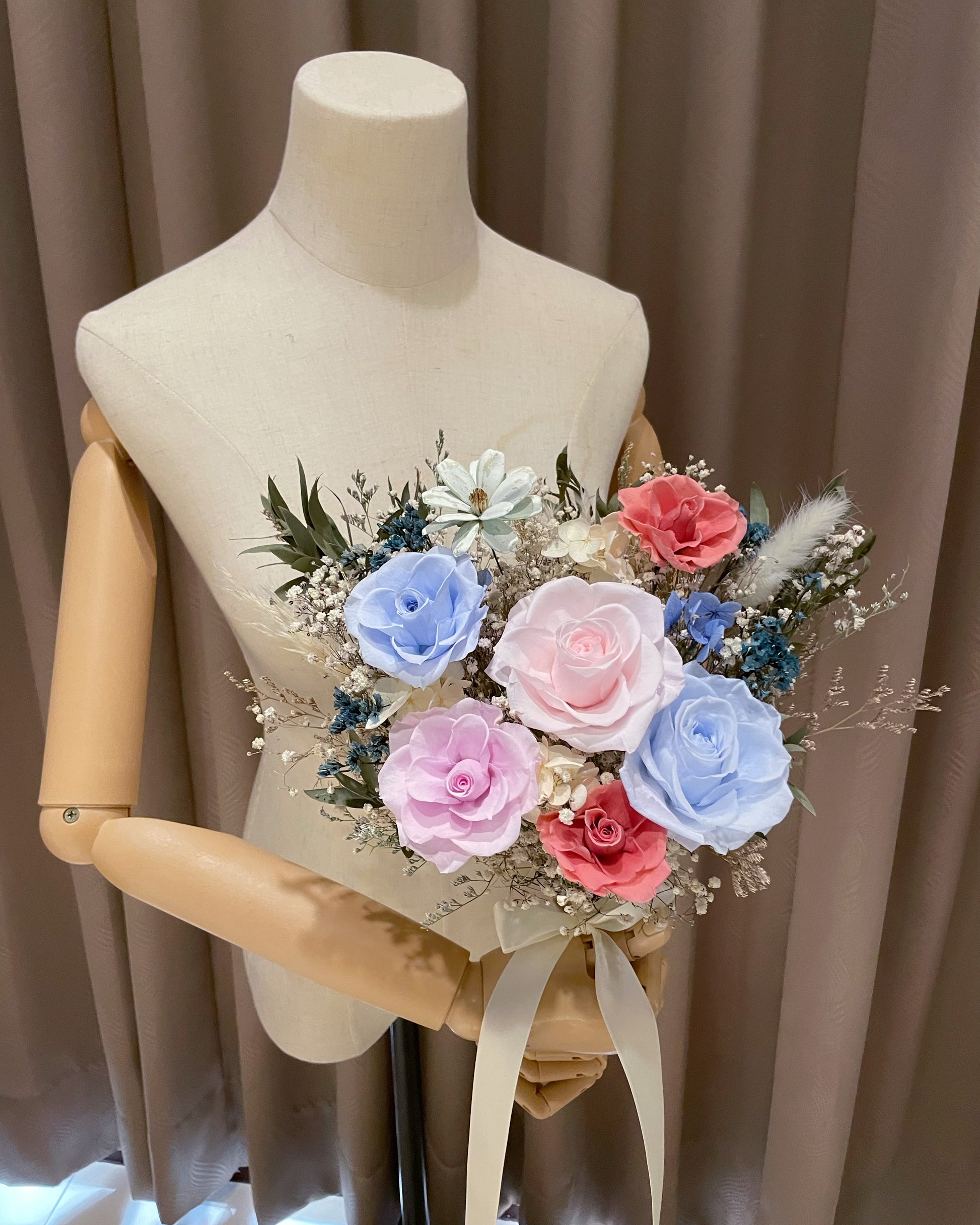 花材:永生玫瑰、永生繡球、索拉花 及 其他永生花材