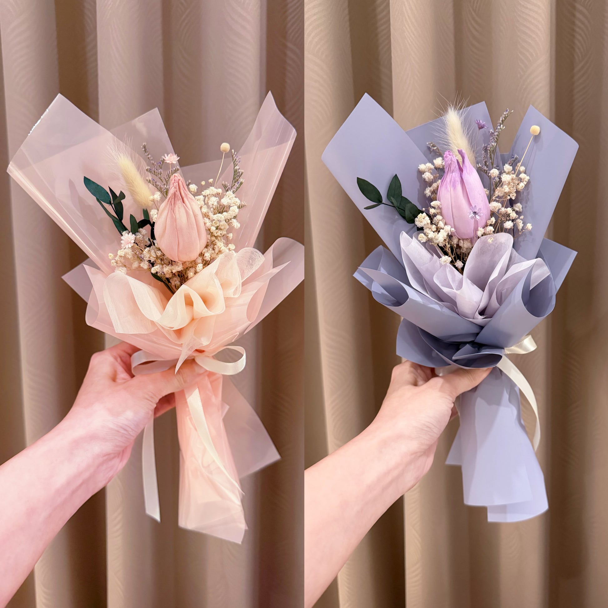 花禮均為手工製成,成品不會與照片完全一模一樣,若遇花材缺貨,設計師將會以類似色系調整更換花材。